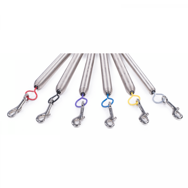 Цветные крючки свободно поворачиваются внутри пружины, что уменьшает нагрузку и продлевает срок службы.